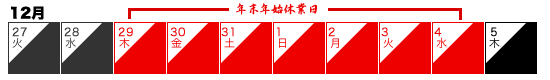 休業日:2011年12月29日(木)〜2012年1月4日(水)